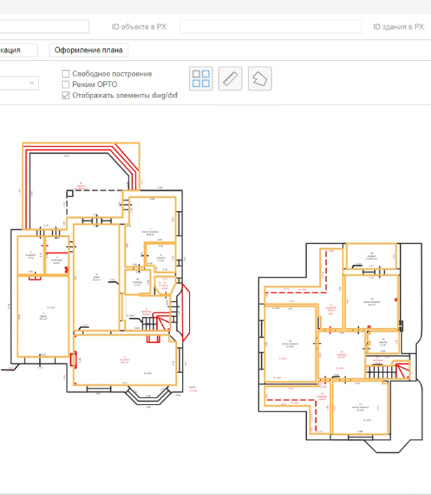 The system for compiling and maintaining floor plans is designed for automated compilation of two-dimensional models (floor plans) of buildings, parts of buildings, isolated rooms and their parts, parking spaces, structures.