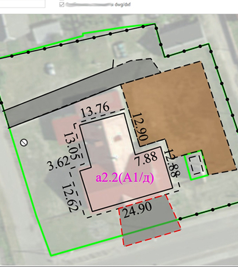 An example of the possibility of working with design documentation (CAD) using GIS technologies.