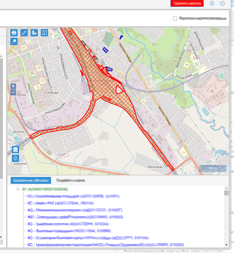 An example of the possibility of working with design documentation (CAD) using GIS technologies.